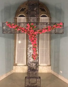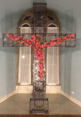 Death, fragility and the hope of New Life explored and expressed through creating a vast cross of flowers as the image accompanying the worship from Maundy Thursday evening to Easter Day. Led by Rev Alison Hobbs